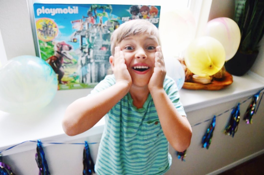 I don’t exactly know why, but I’d been secretly waiting for the day my little monkey Garrett finally decided dinosaurs are cool. In fact, I may have been even more excited than he was. One of my first loves as a kid were dinosaurs. My parents even had a personalized book made for me when I was about Garrett’s age called “Cammeo’s Dinosaur Adventure.” That’s how geeked out about dinos I was – and it didn’t stop there. Triceratops was my all time fave pretty much my whole life (aka present day). Probably because she (yes, it’s a she) was a herbivore so I knew she wouldn’t eat me – yet she had those killer horns which made her super cool, but not as scary as T-Rex 😉 Well, Garrett happens to be a big T-Rex fan and he also looooves PLAYMOBIL Toys! We themed his whole 4th bday party last year around the PLAYMOBIL Ghostbusters™ Firehouse, Ecto-1, Stay Puft Marshmallow Man, etc. He plays with them everyday and we love them too because of how well they’re made, and how it encourages creative play. Well this year for his birthday, we were so excited to surprise him with the PLAYMOBIL Hidden Temple with T-Rex!